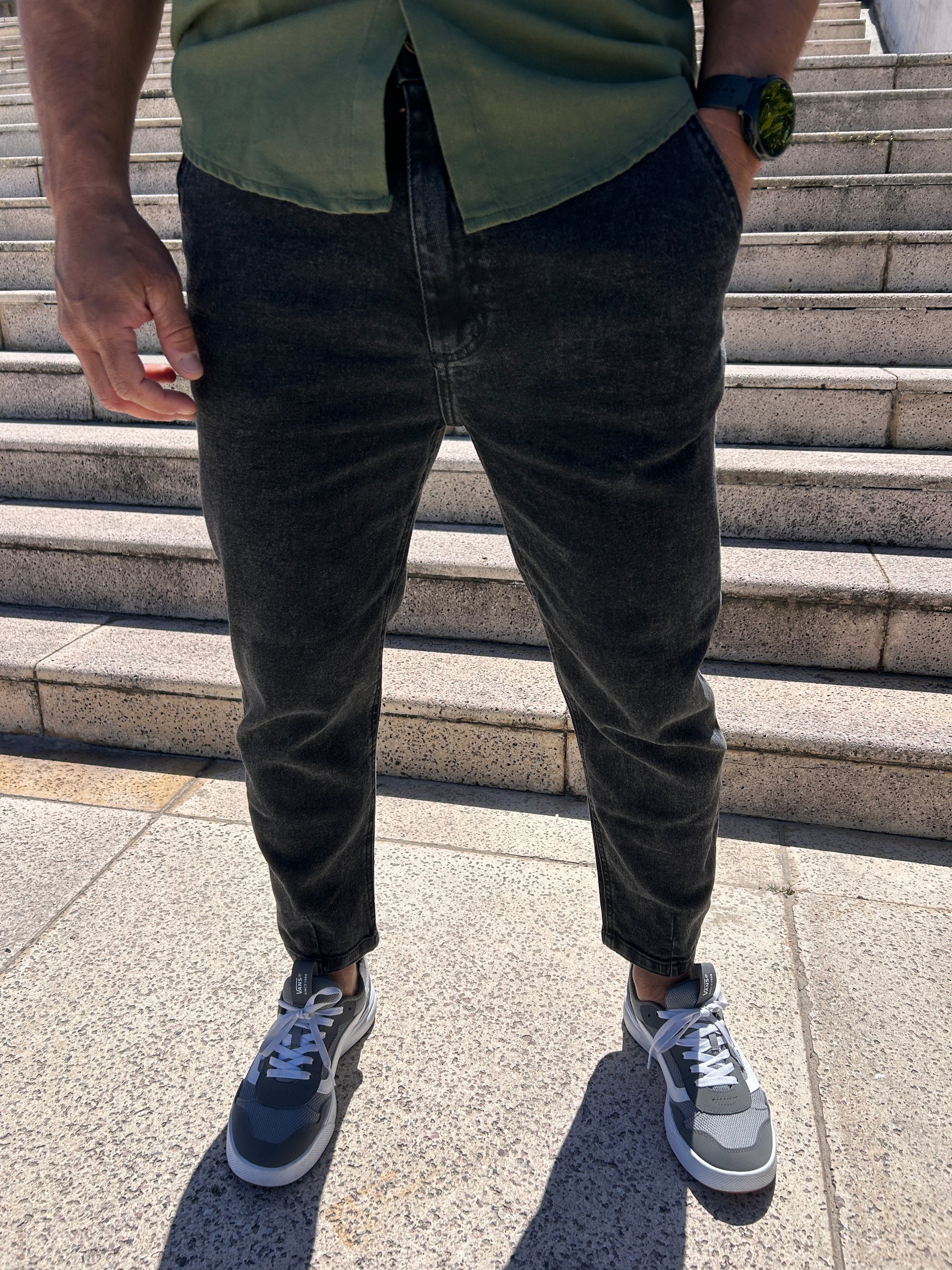 Jeans slouchy black gastado